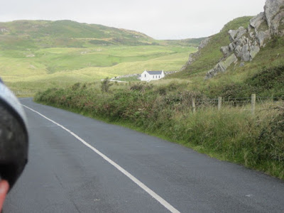 Joined the main road and on towards Glenfarne and beyond with another byway with good whizz down to the Lough Melvin right by the water - no one around -too wet. Through Garrison and final haul to Belleek to the Thatched Cottage for lunch at about 2 pm.